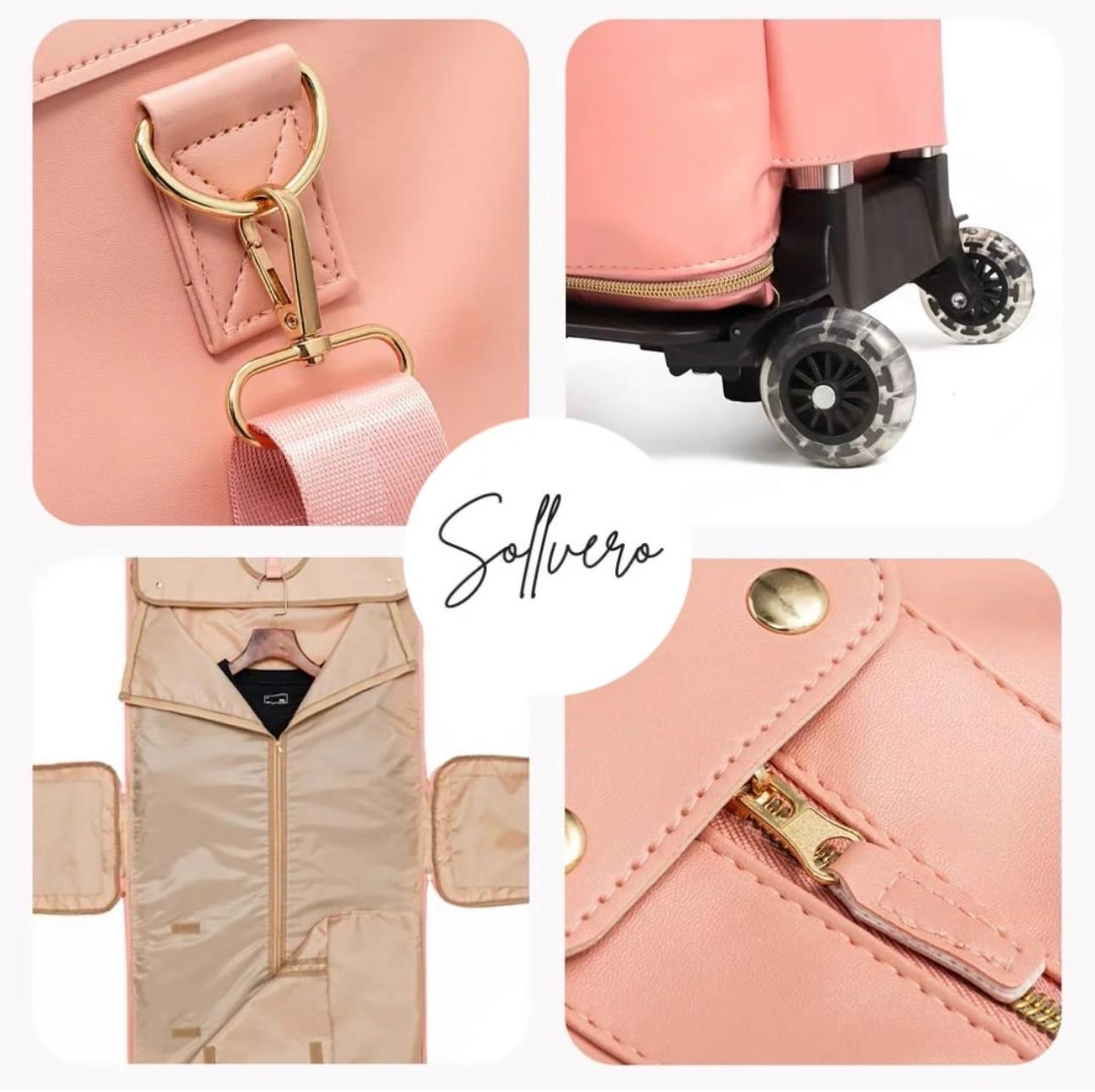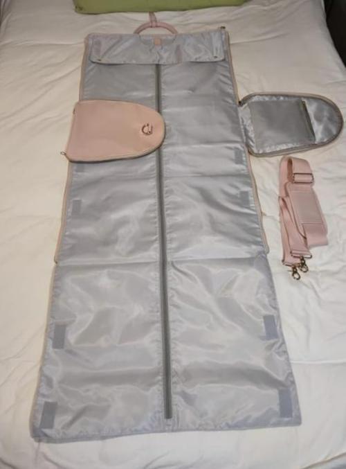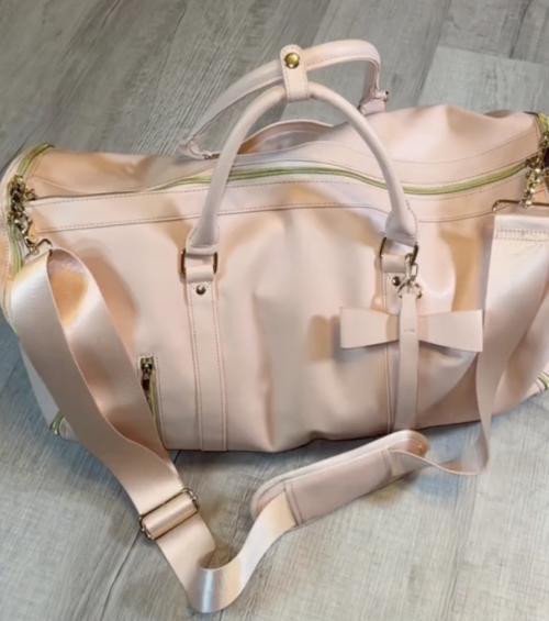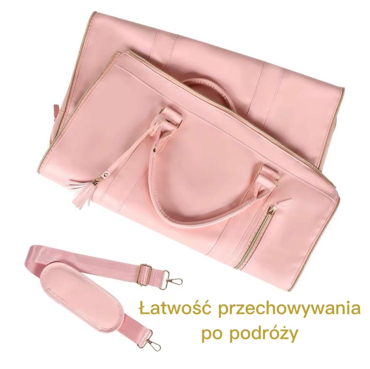 "Ta torba jest oszałamiająca! Odcień różu jest boski i idealny do moich garniturów. Wygląda super elegancko i ma dokładnie tyle miejsca, ile potrzeba na moje podróżne rzeczy. Gorąco polecam"